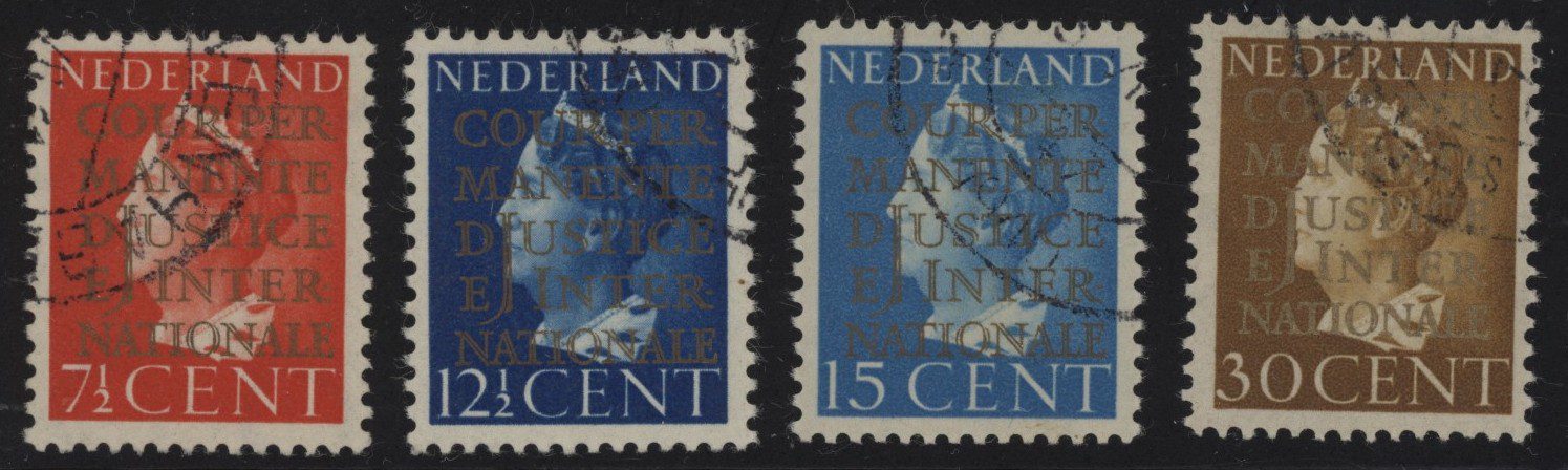 Nederland 1940, 7½ cent t/m 30 cent, NVPH nrs. D16-D19 (Konijnenburg zegels met opdruk Cour International de Justice in goud) gestempeld. De complete serie met frisse zegels.