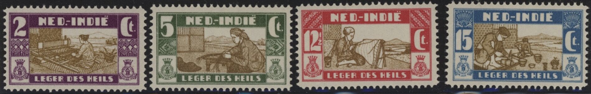Nederlands Indië 1932, 2 cent + 1 cent lila en sepia tot en met 10 cent + 5 cent blauw en sepia, alle met lijntanding 12½, NVPH nrs. 176-179 (Leger des Heils) postfris met originele gom. Een complete serie met frisse zegels zonder gebreken.