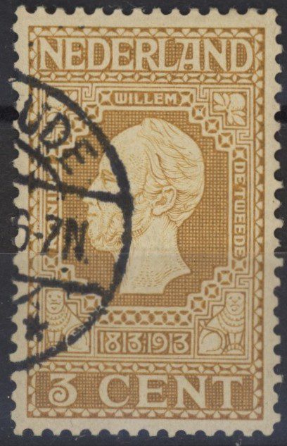 Nederland 1913, 3 cent, bruingeel op roomkleur, NVPH nr. 91 (Koning Willem II) gestempeld. Een fris zegel zonder gebreken.