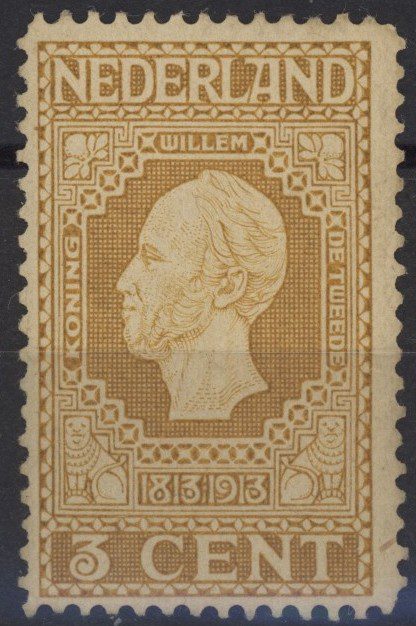 Nederland 1913, 3 cent, bruingeel op roomkleur, NVPH nr. 91 (Koning Willem II) ongebruikt met originele gom. Een fris zegel zonder gebreken.