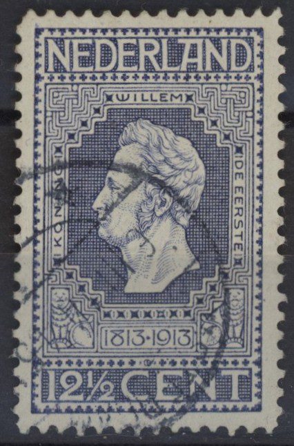 Nederland 1913, 12½ cent, violetblauw op blauw, NVPH nr. 94 (Koning Willem I) gestempeld. Een fris zegel zonder gebreken.