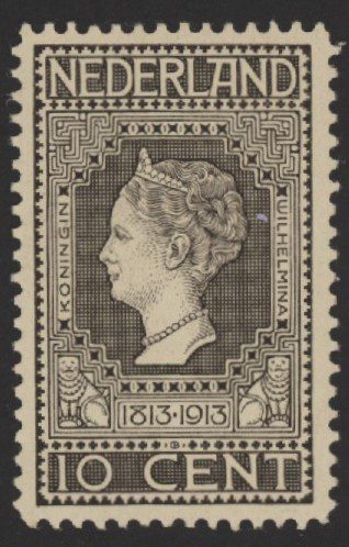 Nederland 1913, 10 cent, grijszwart, NVPH nr. 93 (Koningin Wilhelmina) postfris met originele gom. Een fris zegel zonder gebreken.