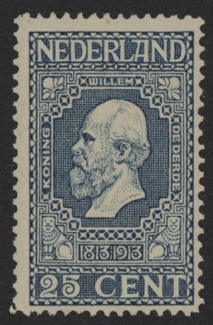 Nederland 1913, 25 cent, lichtblauw, NVPH nr. 96 (Koning Willem III) met originele gom. Een fris zegel zonder gebreken.