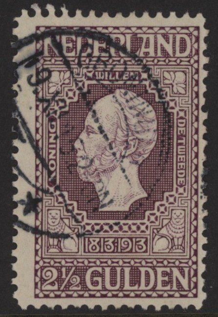 Nederland 1913, 2½ gulden, lijntanding 11½ x 11, donkerviolet, NVPH nr. 99 (Koning Willem II) gestempeld. Een fris zegel zonder gebreken.