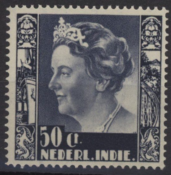 Nederlands Indië 1938, 50 cent donkergrijs, lijntanding 12½, NVPH nr. 260 (Koningin Wilhelmina, groter formaat) postfris met originele gom. Een fris zege; zonder gebreken met Vleeming certificaat.