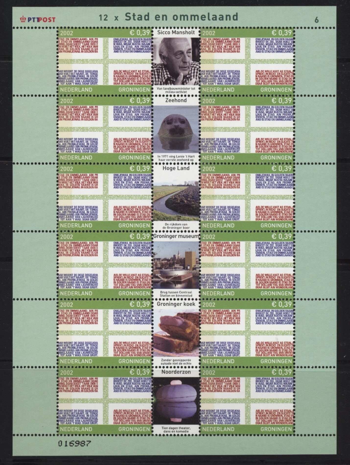 Nederland 2002 , NVPH nr. V2070 Provincie 6: Groningen (Provincievlaggen en volksliederen) postfris met originele gom. Een fris velletje zonder gebreken.