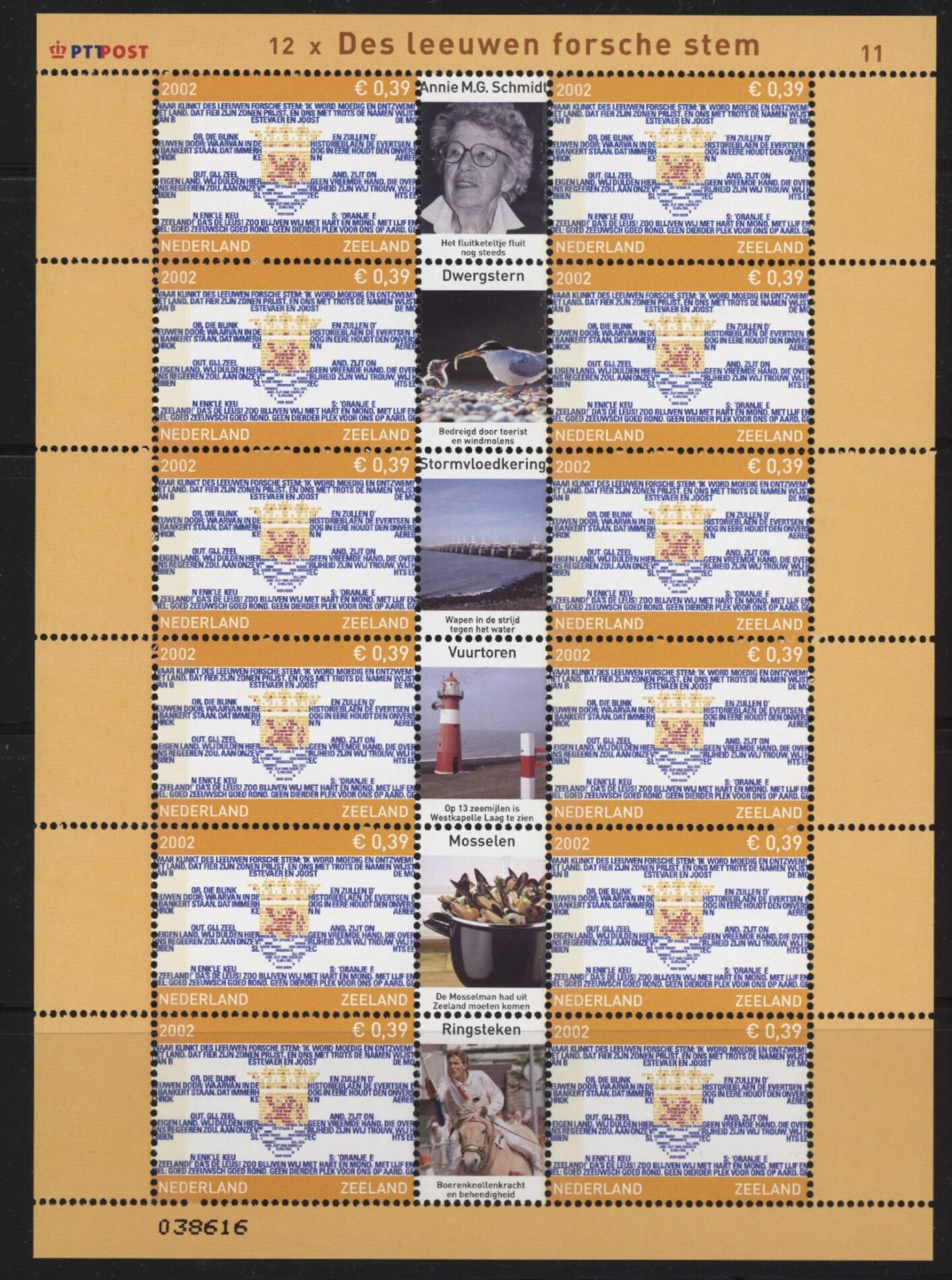 Nederland 2002 , NVPH nr. V2075 Provincie 11: Zeeland (Provincievlaggen en volksliederen) postfris met originele gom. Een fris velletje zonder gebreken.