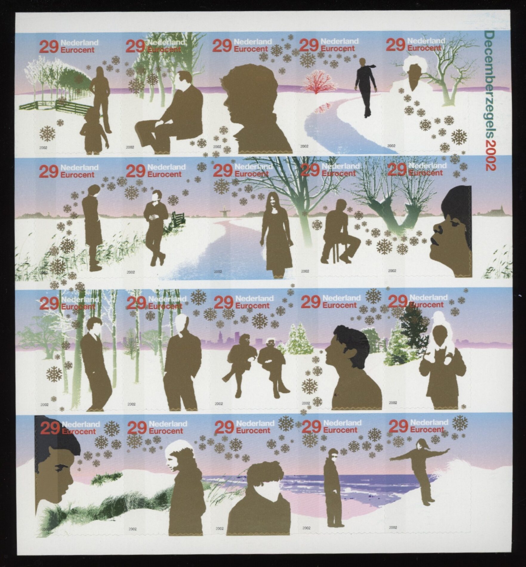 Frankeerzegels Nederland 2004, 20 zegels van € 0,29 cent meerkleurig, NVPH nr V2115-2134 (Decemberzegels) postfris met originele gom. Een fris velletje zonder gebreken.