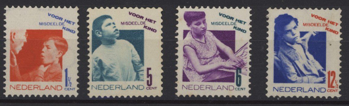 Nederland 1931, 1½ +1½ cent t/m 12½ +2½ cent, kamtanding 12½, NVPH nrs. 240-243 (Kinderzegels) postfris met originele gom. De complete serie met frisse zegels zonder gebreken.