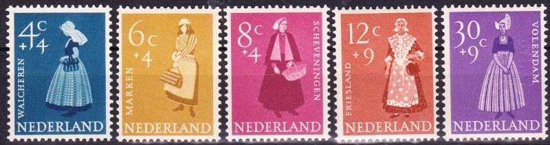 Nederland 1958, 4+4 cent t/m 30+9 cent, kamtanding 12½ : 12, NVPH nrs. 707-711 (Zomerzegels) postfris met originele gom. De complete serie met frisse zegels zonder gebreken.