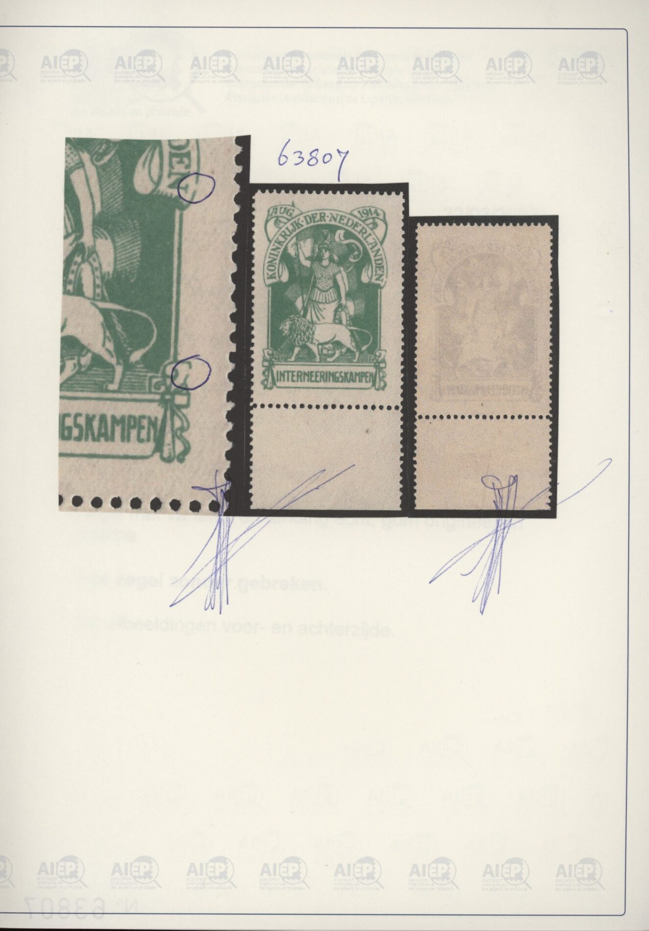 Internering NVPH nr. IN1 met variëteit postfris met attest Vleeming